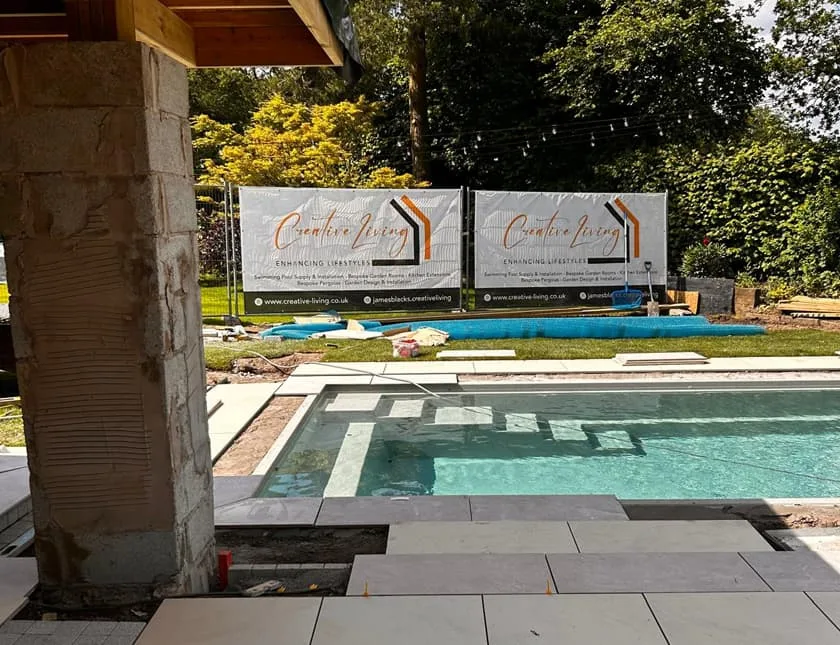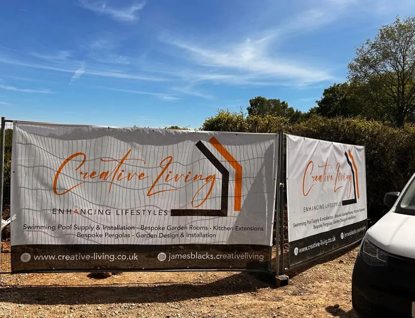 Poolside branded project signage
